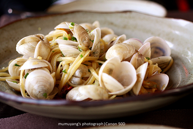 ▼接下來是是蛤蜊意粉,用白葡萄酒調(diào)的味,足足的蛤蜊,鮮美清香。