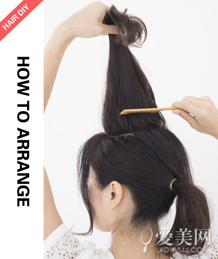 step3:用發(fā)飾固定后將頭頂?shù)念^發(fā)拉扯出蓬松感。