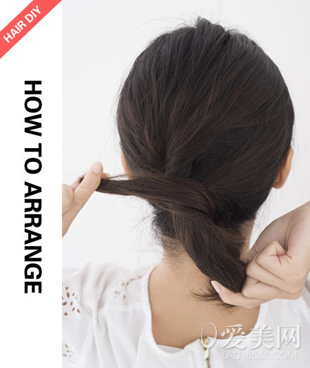 step2:留出頭頂?shù)念^發(fā)將腦后的頭發(fā)綁成馬尾。
