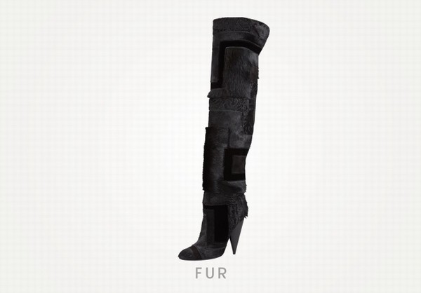 幾何拼貼皮毛過膝皮靴