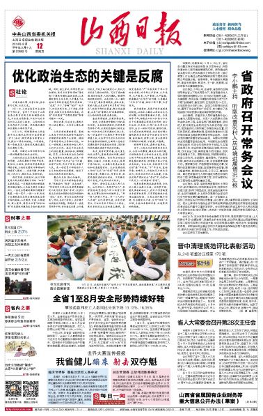 9月1日,山西省委召開全省領(lǐng)導(dǎo)干部大會(huì),宣布了中央關(guān)于山西省委主要負(fù)責(zé)同志職務(wù)調(diào)整的決定。中央政治局常委、中央書記處書記劉云山在會(huì)上指出,山西的政治生態(tài)存在不少問題,黨風(fēng)廉政建設(shè)和反腐敗斗爭(zhēng)形勢(shì)嚴(yán)峻。