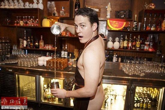 餐廳里的服務(wù)員們都只穿著裸色的內(nèi)褲,并在腰上圍著樹葉。看上去很有古希臘風(fēng)格。