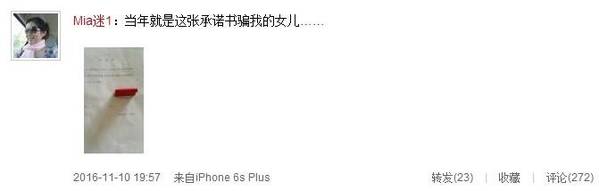 馮軻前妻離婚承諾書