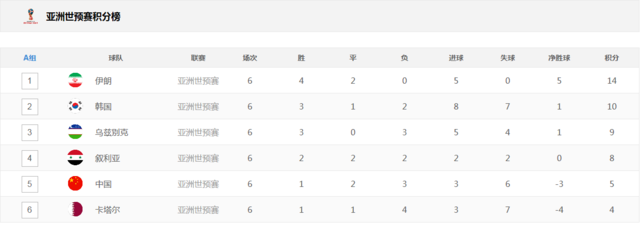 5.國足的凈勝球壓過敘利亞、烏茲別克斯坦。