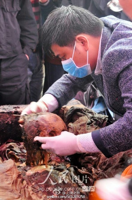7月28日,在上饒市弋陽(yáng)縣新看守所建筑工地,挖出一個(gè)古墓,現(xiàn)場(chǎng)掘出一口棺材,并發(fā)現(xiàn)一具保存尚為完好、身著疑似名門貴族服飾的女干尸。弋陽(yáng)縣文物部門人員初步判斷,此是明代中期左右古墓。