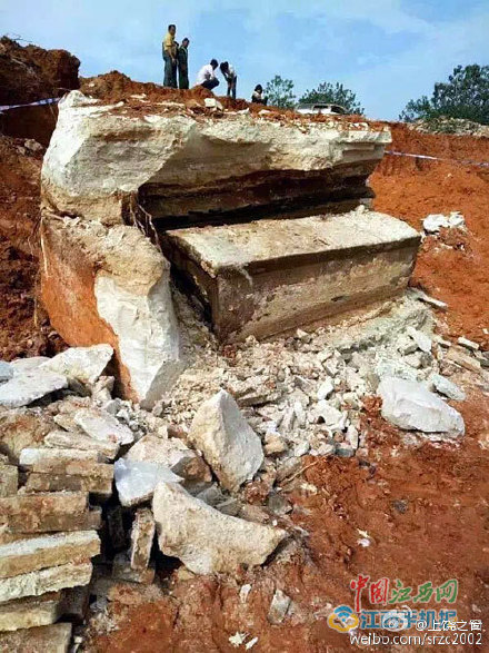 而在半年多前,2016年11月7日,同樣在江西上饒,上饒縣石獅鄉(xiāng)王家壩白領(lǐng)小組一處施工工地發(fā)現(xiàn)一處古墓。