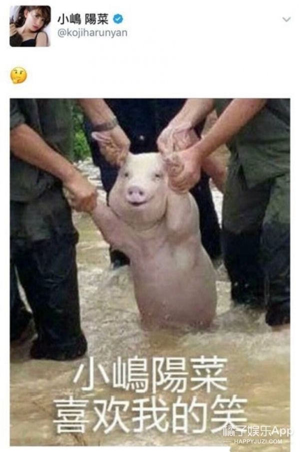 本來(lái)只是中國(guó)網(wǎng)民的自?shī)首詷罚钡侥骋惶?,前AKB48的成員小嶋陽(yáng)菜突然在ins上點(diǎn)贊了這頭豬的表情包