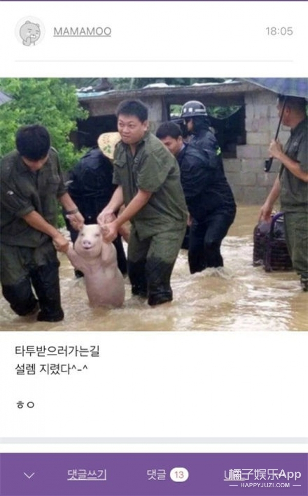 這頭洪水中的happy pig至此成了世界級(jí)的網(wǎng)紅,國(guó)外網(wǎng)友也開始了各種PS: