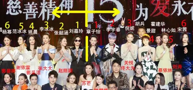 說實(shí)話,這可能是我見過最混亂的大合照了,事先也沒有安排好明星的站位,最后站成什么樣也怪不得某個明星了~
