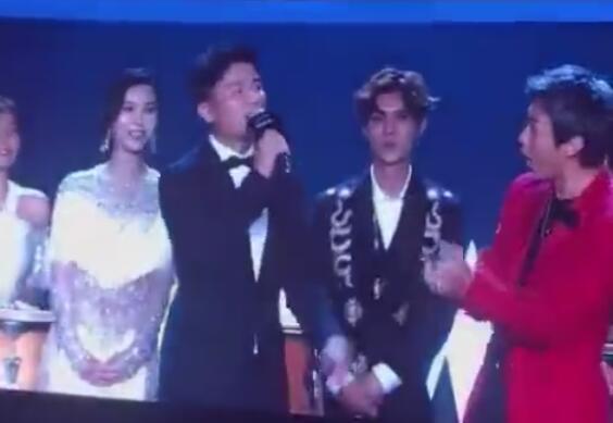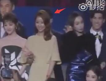 然后全場最尷尬的一幕出現(xiàn)了!張韶涵一開始是跟著鄧超隊的成員一起上臺,然后站在了劉嘉玲邊上,當(dāng)時其實(shí)是舞臺上所有人的最邊邊一個,但她站的位置確實(shí)是舞臺中間。