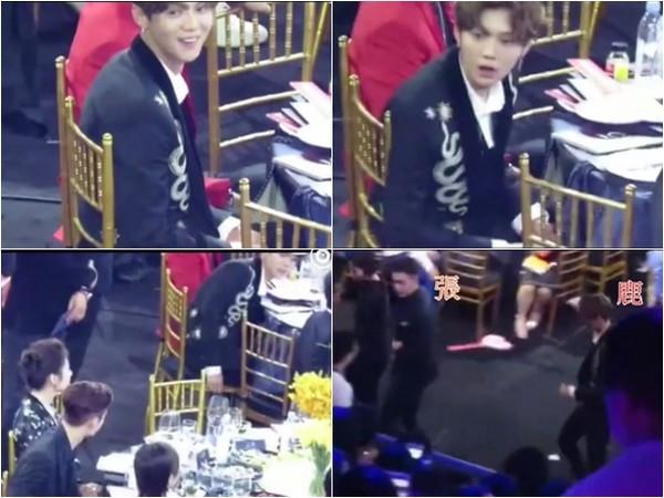 雖然沒坐在一桌,但鹿晗和張藝興的小動作可沒瞞過眾多迷妹們~