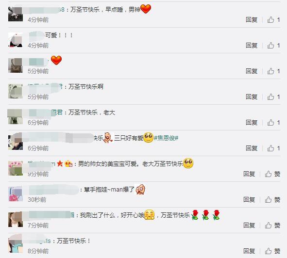 網(wǎng)友也紛紛評(píng)論說(shuō):“男的帥女的美寶寶可愛(ài)。老大萬(wàn)圣節(jié)快樂(lè)”、“老大千鈺姐萬(wàn)圣節(jié)快樂(lè)?。?!我在寫作業(yè)里贏來(lái)了萬(wàn)圣節(jié)orz……老大晚上早點(diǎn)睡呀,雖然可能會(huì)有很多小孩子來(lái)敲門說(shuō)“不給糖就搗蛋”吧,hhhhhhh”