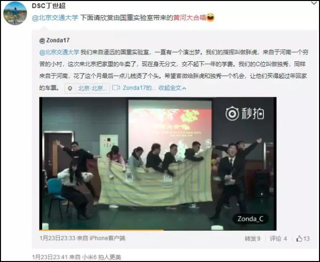 2018年1月23日,北京某大學國重實驗室的新年晚會