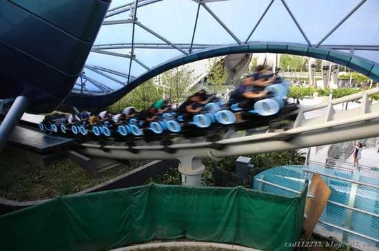 記者一行跟隨導(dǎo)覽員先來到了“極速光輪”區(qū),這是一個非常受游客追捧的項目,有些類似過山車,但視覺、聽覺和感官的沖擊力遠比過山車強烈。雖然時間還早,但進口處已經(jīng)排著長長的隊,提示等候時間為2小時40分鐘。