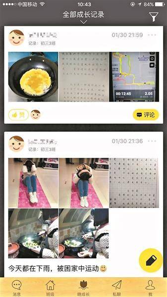 每日修煉表除了包括練字、完成“買菜+做飯+洗碗”等家務、跑步等必做任務外,還包括寫觀察日志、去圖書館、博物館等選做任務。而放假以來,這個平臺一直很熱鬧,很多同學每天一起床就開始記錄自己的寒假生活。