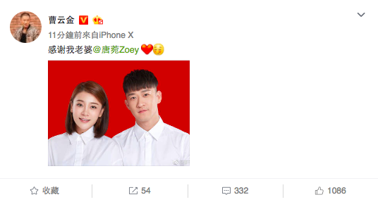 曹云金微博曬照宣布結(jié)婚喜訊:感謝我老婆