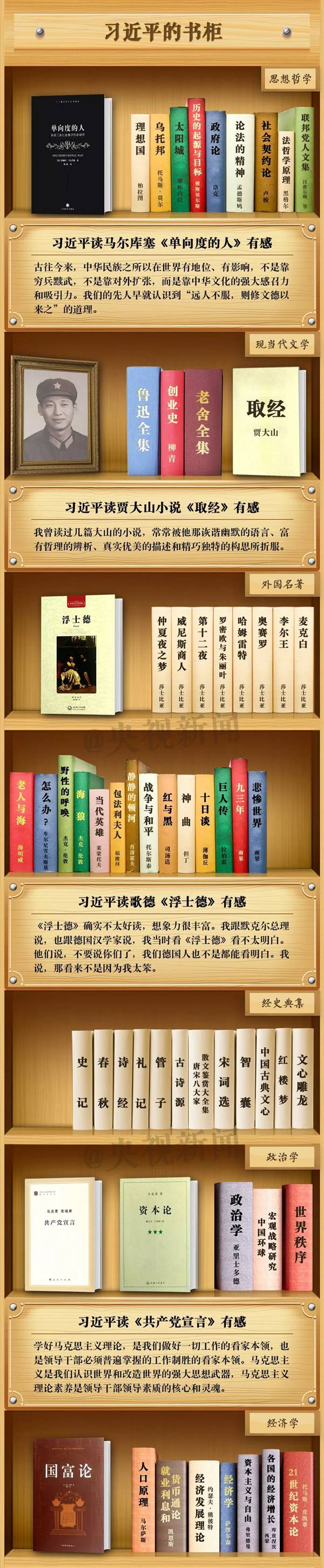 在這個(gè)節(jié)日,央視新聞定制了習(xí)近平總書(shū)記的“書(shū)柜”,來(lái)看看總書(shū)記的“書(shū)單”和讀書(shū)感悟吧。