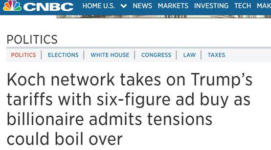 可隨著之后特朗普對(duì)中國等國發(fā)動(dòng)貿(mào)易戰(zhàn)的行為,以及相關(guān)惡果的逐漸顯現(xiàn),科赫家族的最新表態(tài)也與今年1月的言論形成了鮮明的對(duì)比。