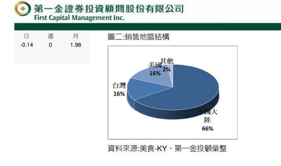 數(shù)據(jù)顯示這家來自臺(tái)灣省的餐飲企業(yè)對大陸市場很是依賴,其母公司“美食-KY”2017年第三季度的營收中有66%是來自大陸地區(qū)的562家店鋪,而臺(tái)灣地區(qū)的營收占比則僅為16%。
