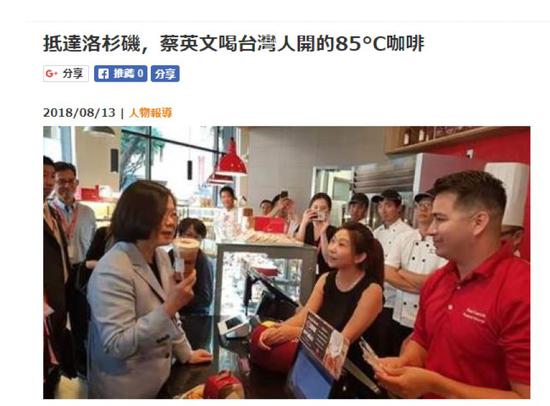 然而,令這家在大陸賺錢賺得“美滋滋”的臺(tái)灣企業(yè)意外的是,公司在美國洛杉磯的一家店鋪,卻成了在美國洛杉磯“過境”和給臺(tái)獨(dú)“造勢”的蔡英文專門“造訪”的一站。而且根據(jù)臺(tái)灣媒體的報(bào)道,這蔡英文還把“85度C”視為“臺(tái)灣之光”。