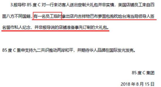 其次,有大陸網(wǎng)友還發(fā)現(xiàn)“85度C”的聲明中有將一切責(zé)任推給“臨時(shí)工”的嫌疑,并回避了導(dǎo)致這場風(fēng)波的“源頭”恰恰是跑到美國為臺(tái)獨(dú)“造勢”的蔡英文。