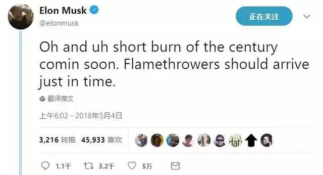 每日經(jīng)濟(jì)新聞(微信號(hào):nbdnews)記者注意到,今年5月初,馬斯克還自信滿(mǎn)滿(mǎn)地表示,他將“很快燒光做空者”。