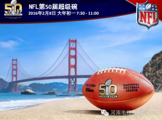 2月8日農(nóng)歷大年初一上午7:00到11:00,河南電視臺(tái)新聞?lì)l道全球同步直播第50屆美國職業(yè)橄欖球年度冠軍總決賽,敬請(qǐng)收看。