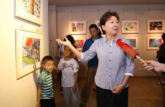 河南省新聞出版廣電局副局長崔為兵,河南省文化廳副廳長康潔,河南省環(huán)境保護(hù)廳副巡視員高惠民,河南省文化廳公共文化處處長崔玉山,河南省環(huán)境保護(hù)宣傳教育中心主任焦萬益,河南電視臺都市頻道總監(jiān)劉林軍,河南省少年兒童圖書館館長崔喜梅等領(lǐng)導(dǎo)和嘉賓出席了活動并為獲獎的小朋友頒獎。同時,都市頻道主持人和孩子們還分別帶來了精彩紛呈的節(jié)目。都市頻道名嘴韓較瘦和劉雯為孩子們演唱了環(huán)保主題歌曲《藍(lán)天修煉手冊》,啟動儀式結(jié)束后,與會領(lǐng)導(dǎo)和小朋友及家長們移步到畫展展區(qū)參觀獲獎作品,并在展區(qū)門口簽名留念。