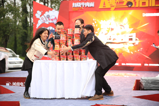 當天的演唱環(huán)節(jié),涌現(xiàn)出了高音哥、清新姐等一眾實力唱將,而在游戲環(huán)節(jié)“康師傅都是我的”中,女生們可就厲害了,使出了渾身解數,一位女生以一次抱得十一桶康師傅紅燒牛肉面的記錄登頂冠軍,連男生也甘拜下風。