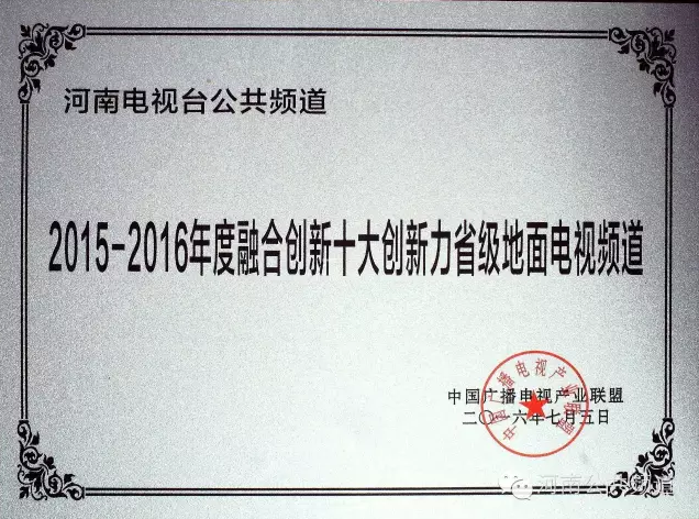 7月9日至12日,2016全國電視節(jié)目模式創(chuàng)新交流年會在黑龍江省黑河市舉行。河南電視臺公共頻道榮獲2015-2016年度融合創(chuàng)新十大創(chuàng)新力省級電視頻道。