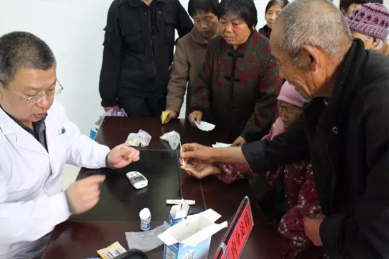 醫(yī)生正在為79歲的老奶奶測血糖