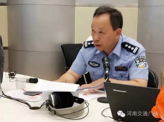 6月16日上午,鄭州市公安局交巡警支隊(duì)竇立勇支隊(duì)長帶領(lǐng)車管所、交通科研所、法制、交通、事故等科室負(fù)責(zé)人做客河南交通廣播《南方談交通》節(jié)目,與廣大車友就交通出行話題實(shí)時互動。