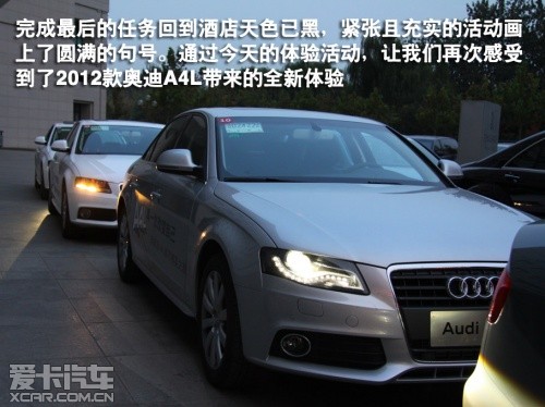 結(jié)語:在此次活動中,讓我們再次感受到了2012款奧迪A4L帶來的全新體驗(yàn),尤其是一些實(shí)用性配置的增加,讓駕駛者和乘坐者充分感受到了A4L帶來的舒適以及便捷。此外,2012款奧迪A4L在價格不變的基礎(chǔ)上增加了這些實(shí)用性配置,從而進(jìn)一步提升了其性價比。