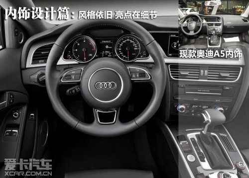 2012款奧迪A5采用了全新設計的多功能方向盤,與現(xiàn)款車型相比在造型上有了小幅的修改,除了方向盤更加厚實以外,原本方形的金屬環(huán)繞裝飾被圓型所替代。