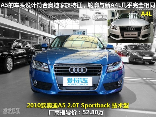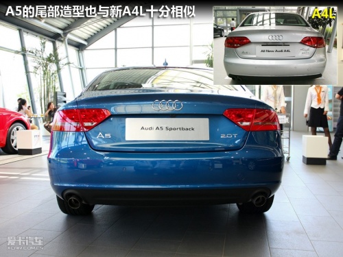 如果不仔細(xì)看,你將很難把它和新A4L區(qū)分開,它的車頭部造型幾乎與A4L完全相同,車身尾部也僅僅是尾燈與A4L略微不同。如果不是尾部的A5字樣標(biāo)識(shí),很多人都可能會(huì)“看花眼”。事實(shí)上,奧迪A5 Sportback的車身尺寸也與歐版奧迪A4較為接近。