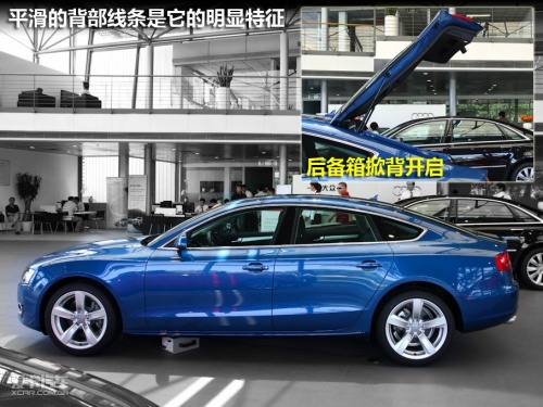 5月23日,奧迪A5/S5全系共10款車型正式在全國上市,其中包括全新的A5/S5 Cabriolet敞篷轎跑車、A5/S5 Sportback五門轎跑車和全新的A5/S5 Coupe雙門轎跑車,以及充滿動(dòng)感個(gè)性的A5 Coupe 2.0T風(fēng)尚版。今天我們在4S店拍攝到的這輛藍(lán)色的A5為售價(jià)52.8萬的Sportback 2.0T車型。