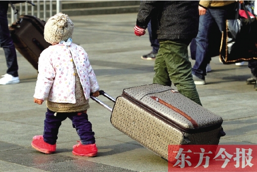 稍大些的,已經(jīng)懂得幫爸爸分擔,小身板背著大行李,雖沉重,仍一路小跑,一路歡笑。