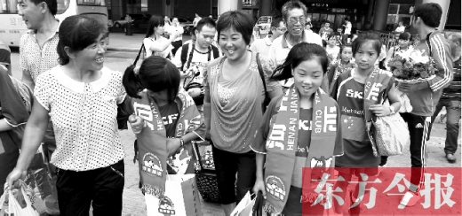 昨天下午3點,在新鄭國際機場大廳等待已久的隊員家長們,終于迎來臨潁縣女子足球隊的小隊員們。當家長們看見隊員從大廳里整齊走出來,都圍了上去,紛紛念叨著“瘦了,黑了”。李女士說,大約有7名小隊員的家長來鄭州接機,幾乎所有的孩子河南省都沒出過。隨后,小隊員和家長們陸續(xù)坐上了趕往河南建業(yè)球場的大巴。