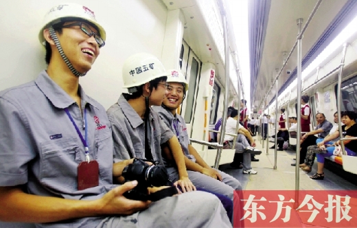 雖然是空載試運行,但昨日東方今報記者仍和部分鄭州地鐵建設(shè)者一起,乘坐了短途運行的地鐵列車,行車站距是體育中心站至農(nóng)業(yè)南路站,一共五站四區(qū)間。