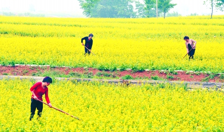 4月23日,嵩縣大坪鄉(xiāng)大坪村農(nóng)民在大白菜制種基地進(jìn)行田間管理。今年該村與濟(jì)源一家農(nóng)業(yè)公司簽訂1000畝白菜制種合同,由公司提供種子和前期農(nóng)資用品,采取“公司+農(nóng)戶”種植模式制種,白菜種子從種植到收獲僅用2個(gè)月,每畝可收入2000多元。一村民說(shuō):“種一畝麥子需要8個(gè)月時(shí)間,對(duì)于我們這個(gè)干旱缺水的山區(qū),每畝收入不足600元,訂單培育白菜種子,真是太劃算了!” 記者 楊遠(yuǎn)高 攝