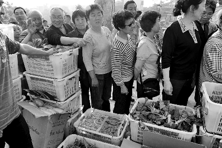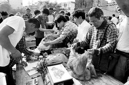 在現(xiàn)場,管城區(qū)商務(wù)局的工作人員忙個不停。該局工會主席李國占說,不到6點半,就有很多市民提著籃子來買菜,7點鐘開始賣菜時,已經(jīng)有200多人在排隊。