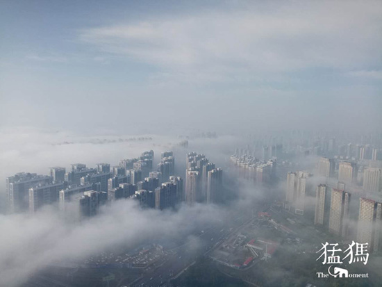 當(dāng)厚厚的霾層籠罩著大地,太陽(yáng)光也難穿透進(jìn)來(lái),怎么辦?既然不能水平遠(yuǎn)離,那就縱向登高吧,在數(shù)百米的高空,有藍(lán)天白云等著你,登高的好去處,非中原福塔莫屬。