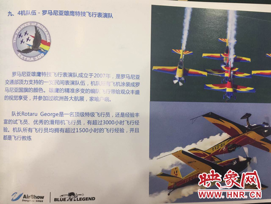 其中頒獎入圍飛行隊有:法國卡普什飛行隊(雙機)、俄羅斯首航飛行隊(雙機)、西班牙雙箭飛行隊(雙機)、澳大利亞紅色男爵飛行隊(雙機)、立陶宛總統(tǒng)飛行隊(三機)、英國刀鋒飛行隊(四機)、英國環(huán)球之星飛行隊(四機)、“奧倫達部落”意大利開拓者飛行隊(四機)、羅馬尼亞雄鷹飛行隊(四機)、美國飛行家飛行隊(四機)、南非迅龍飛行隊(四機)、英國雅皮士飛行隊(六機);表演嘉賓飛行隊有:英國百年靈空中漫步飛行隊(雙機),美國空中海報飛行隊(單機)。