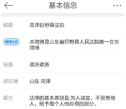 認(rèn)證為“山東省巨野縣人民法院唯一官方微博”的賬號(hào)力挺馬蓉,并附文:“一紙聲明,高下立判,王寶強(qiáng)就這樣趕絕孩子他媽媽!”