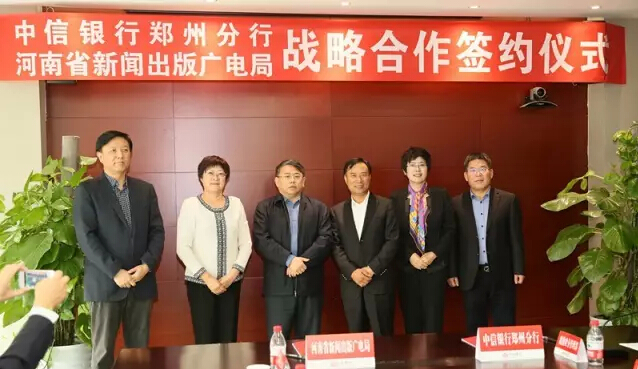 中信集團(tuán)與省廣電局有著悠久的合作歷史和良好的合作基礎(chǔ),早在2006年,中信集團(tuán)作為戰(zhàn)略合作伙伴入股河南有線電視網(wǎng)絡(luò)集團(tuán)有限公司,與省廣電一道,為整合全省有線電視網(wǎng)絡(luò)、推進(jìn)有線電視數(shù)字化等作出了積極的貢獻(xiàn)。本次中信銀行鄭州分行與省廣電局簽署戰(zhàn)略合作協(xié)議,中信銀行鄭州分行將依托中信集團(tuán)的綜合金融服務(wù)平臺優(yōu)勢,集中優(yōu)勢資源,為省廣電局提供一攬子、全方位金融服務(wù),支持省廣電局在媒體融合發(fā)展、云計算和大數(shù)據(jù)、電子商務(wù)、跨境E貿(mào)易、文化地產(chǎn)等新興產(chǎn)業(yè)領(lǐng)域持續(xù)做大做強(qiáng),助力省廣電局打造中西部地區(qū)實(shí)力最強(qiáng)、規(guī)模最大并具有很強(qiáng)傳播力、公信力、影響力的新型媒體集團(tuán)。