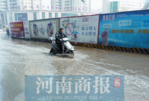 3月26日,鄭州晴空萬(wàn)里,然而紫荊山路上卻多出一條百米長(zhǎng)“河”。當(dāng)天上午12時(shí),紫荊山路與東大街交叉口,北向南方向的綠燈亮后,行人穿過(guò)東大街,卻被路南的一條“河”攔住去路。