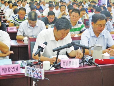 在昨天的約談會(huì)上,羅山縣委書(shū)記許遠(yuǎn)福顯得異常醒目,他是此次約談會(huì)中,唯一一名作為約談代表發(fā)言的地方政府負(fù)責(zé)人,并進(jìn)行表態(tài)性發(fā)言。