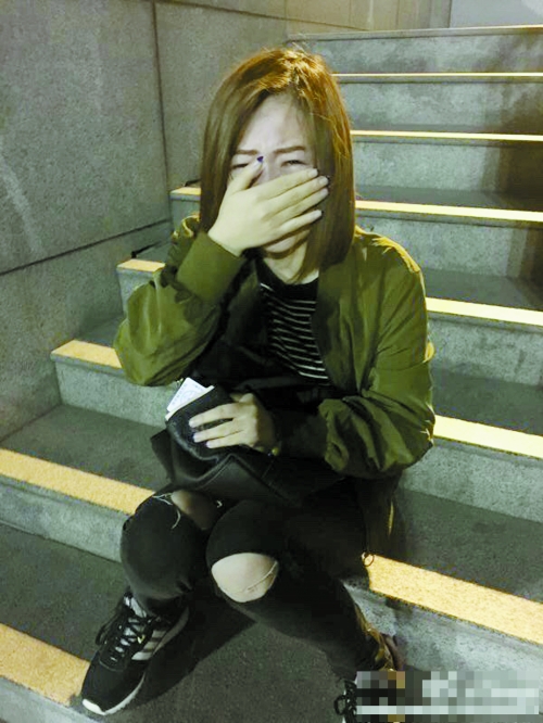 在微博配圖中,撿到錢包的環(huán)衛(wèi)工穿著“站區(qū)環(huán)衛(wèi)”黃色馬甲,手中提著掃帚和一個裝著塑料瓶的塑料袋,另一張圖則是網友“蘇粉mpp”坐在西廣場臺階上捂臉哭泣的照片。