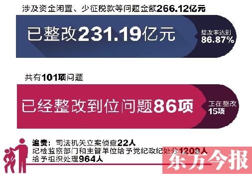 從問題金額看,審計(jì)工作報(bào)告中涉及資金閑置、少征稅款等問題金額266.12億元,已經(jīng)整改231.19億元,整改率達(dá)到86.87%。 從問題數(shù)量看,審計(jì)工作報(bào)告中共有101項(xiàng)問題,已經(jīng)整改到位問題86項(xiàng),正在整改15項(xiàng)。 據(jù)悉,對(duì)于審計(jì)移送的違法違規(guī)問題,司法機(jī)關(guān)立案?jìng)刹?2人,紀(jì)檢監(jiān)察部門和主管單位給予黨紀(jì)政紀(jì)處分1209人,給予組織處理964人。其中,對(duì)企業(yè)或個(gè)人騙取生活補(bǔ)貼資金問題,市縣監(jiān)察機(jī)關(guān)、業(yè)務(wù)主管部門在收回補(bǔ)貼資金1970萬(wàn)元的同時(shí),給予當(dāng)事人、有關(guān)經(jīng)辦人員黨紀(jì)政紀(jì)處分299人,給予誡勉談話等組織處理219人。(記者 梁新慧)