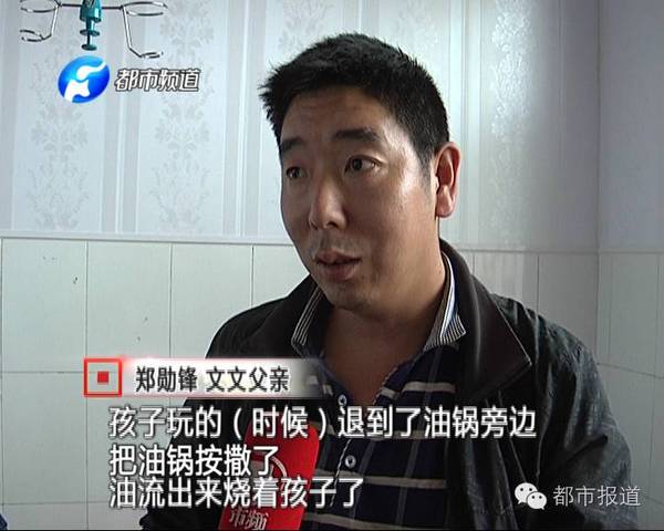 油鍋直徑50厘米左右,文文掉進油鍋后,自己掙扎著爬了出來,直至文文大哭大叫后,家人才發(fā)現孩子掉進了油鍋里。